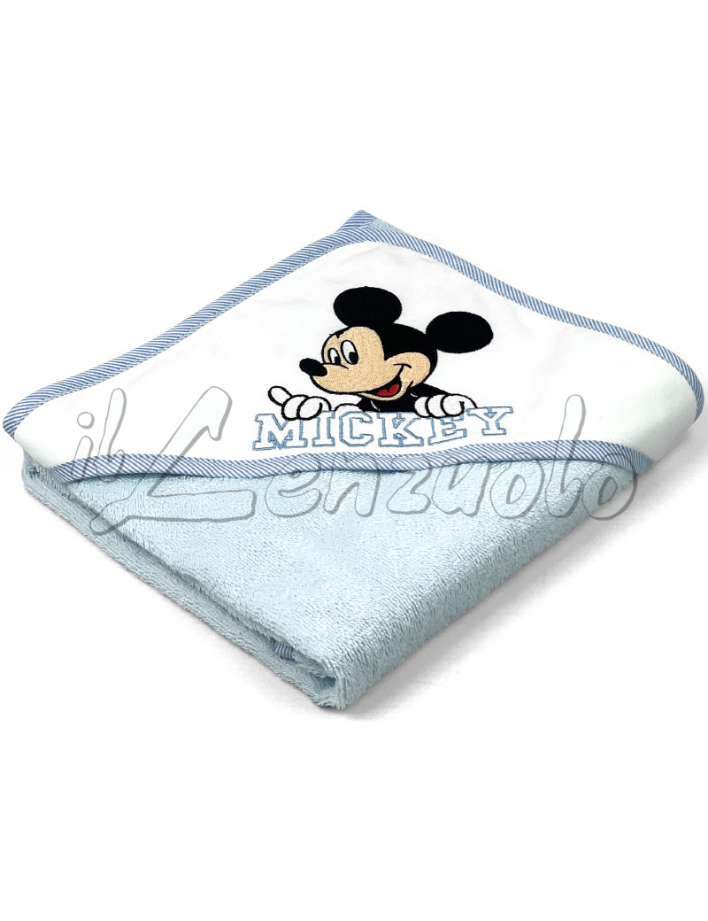 Avvolgi il tuo piccolo in un dolce abbraccio dopo il bagnetto con il nostro accappatoio a triangolo per neonati Disney Mickey, realizzato in spugna di puro cotone 100%. Morbido, assorbente e delicato sulla pelle sensibile del neonato, questo accappatoio รจ lโideale per garantire comfort e protezione fin dai primi giorni di vita. Il modello con il triangolo bianco presenta un elegante ricamo con il sorridente volto di Topolino. Il bordino azzurro aggiunge un tocco raffinato e giocoso, perfetto per i bimbi che amano i personaggi classici e intramontabili. Questo accappatoio triangolare per neonati in spugna รจ pratico e funzionale: si adatta facilmente alla testa del bambino grazie al cappuccio integrato, mantenendolo sempre asciutto e al caldo dopo il bagno o la doccia. Facile da lavare e resistente nel tempo, รจ un accessorio indispensabile nel corredino neonato, ideale anche come idea regalo nascita, battesimo o baby shower.