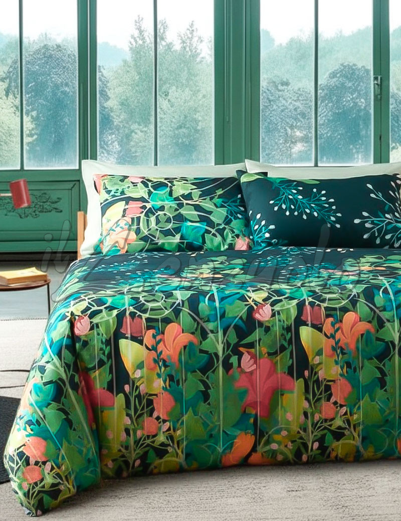 Copripiumino matrimoniale Bassetti FLOWER GATE in puro cotone.