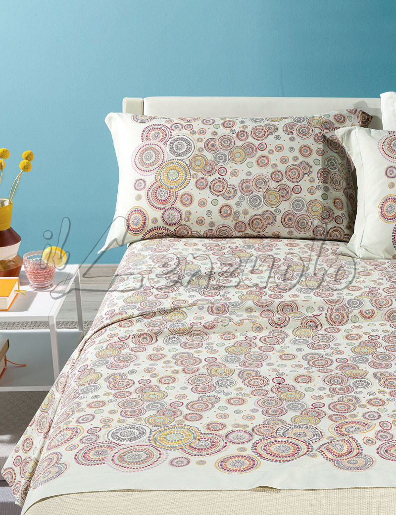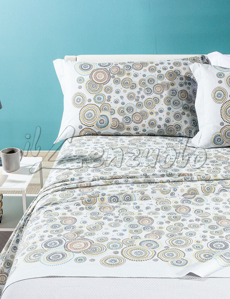 Lenzuola matrimoniali Caleffi realizzate in morbida tela di puro cotone. Splendida fantasia con motivo mandala, realizzata in moderni colori. Lenzuola per letto matrimoniale leggere, fresche, colorate, le lenzuola in cotone Caleffi sono la scelta di qualità per milioni di italiani. Lenzuola prodotte con i migliori materiali accuratamente selezionati, processi di lavorazione sicuri e sostenibili che le rendono perfetto per chi cerca qualità e sicurezza.