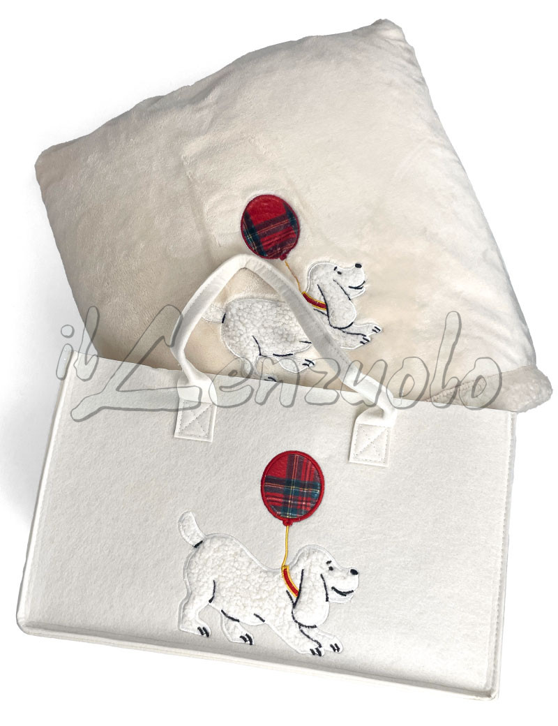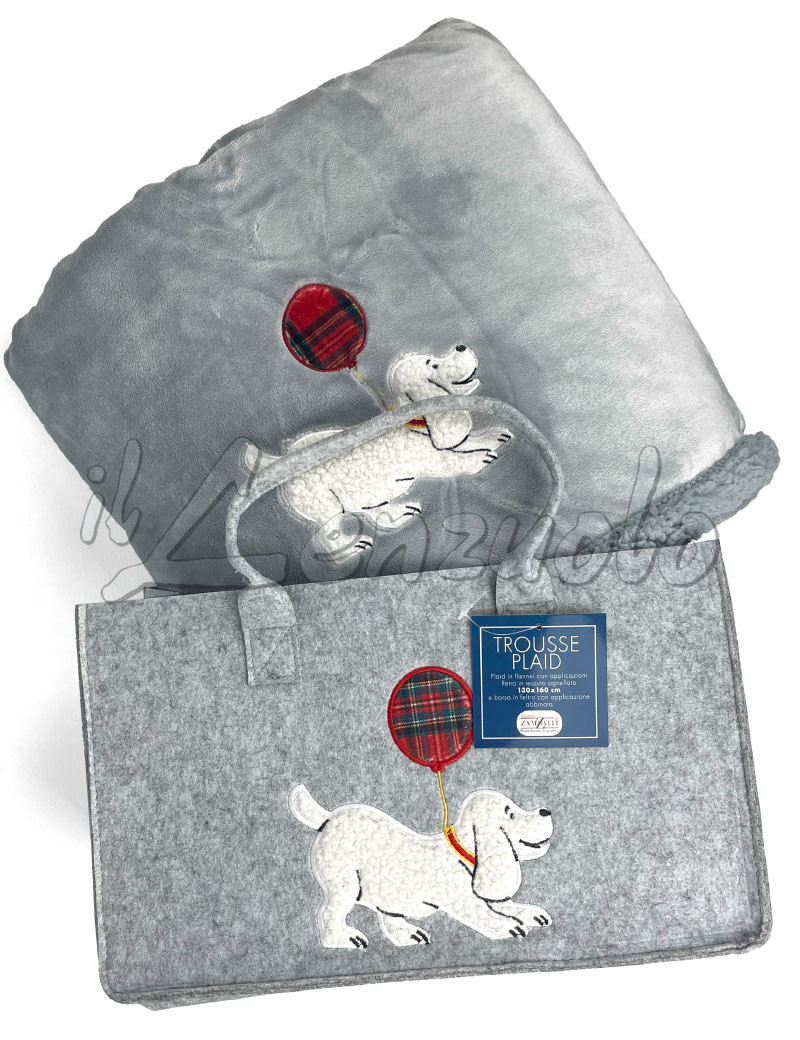 Plaid in pile cm 130×160 con borsa in feltro DOG di Zambaiti.
