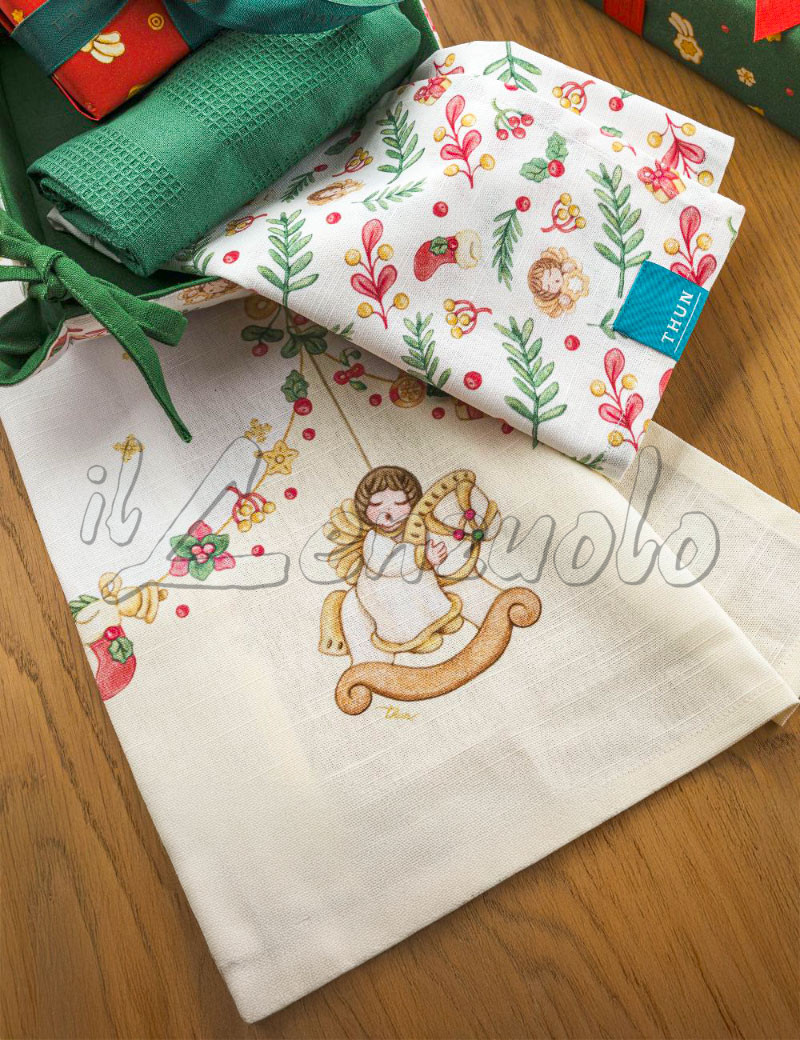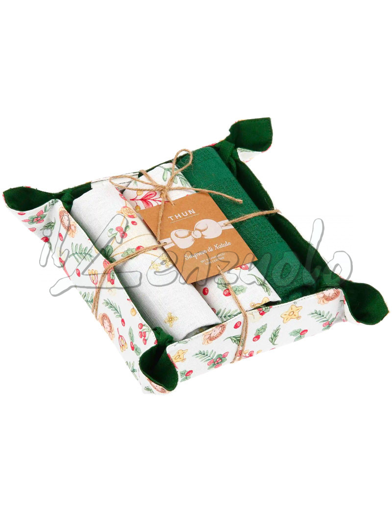 Strofinacci Natalizi THUN Set 3 pezzi con Cestino.