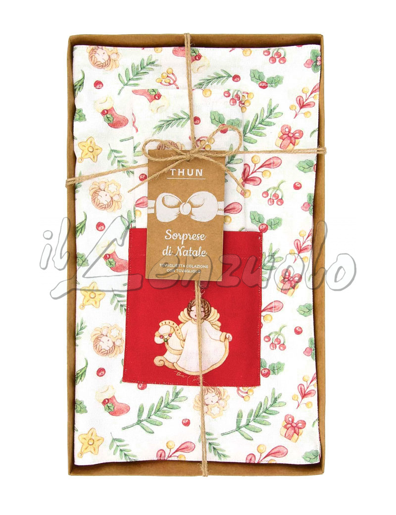 La tovaglietta Natalizia Thun con tasca e tovagliolo in cotone รจ lโaccessorio perfetto per iniziare la giornata con stile, colore e funzionalitร . Realizzata in 100% cotone di alta qualitร , questa tovaglietta รจ pensata per offrire praticitร e comfort durante la colazione. Il tovagliolo coordinato completa il set, creando un look armonioso ed elegante che valorizza la tua tavola ogni giorno. I motivi decorativi tipici del mondo Thun, caratterizzati da colori caldi, linee dolci e dettagli originali, rendono questa tovaglietta un elemento d’arredo utile e allo stesso tempo raffinato, perfetto per dare un tocco di allegria alla cucina o alla sala da pranzo. La tovaglietta arriva confezionata in una scatola regalo, ideale per chi desidera fare un dono pratico, elegante e di qualitร . ร perfetta come idea regalo perย sorprendere chi ama i prodotti Thun e gli accessori per la tavola che uniscono stile e funzionalitร . Facile da lavare e resistente allโuso quotidiano, la tovaglietta colazione Thun in cotone รจ una scelta ideale per chi desidera un accessorio duraturo, bello e anche versatile.