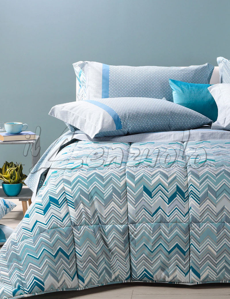 Trapunta matrimoniale Caleffi, pesantezza invernale e tessuto in puro cotone. Moderna fantasia geometrica, brillanti tonalitร che si abbinano bene ad ogni tipologia di arredamento, per creare un’atmosfera unica. Il piumone, soffice e caldo, riuscirร a vivacizzare le stanze da letto, personalizzando perciรฒ con le sue fresche tonalitร briose. Realizzato con i migliori materiali: finissimo tessuto di puro cotone, imbottitura in poliestere anallergico ideali per un corretto riposo. La trapunta Caleffi inoltre grazie alle sue proprietร termiche, ti proteggerร dal freddo anche nelle notti piรน rigide, senza appesantire. Tutti i prodotti sono privi di sostanze nocive, ed altamente traspiranti, cosรฌ da assicurare un ottimo relax all’insegna del benessere, e sicuramente il giusto tepore adatto alla stagione piรน rigida.